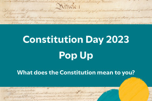 Stop by the Connelly Library's Pop Up Constitution Day display to participate in a group mural about what the Constitution means to you, get a free pocket-sized Constitution (while supplies), and check out books that feature artists and designers who have challenged the status quo through their work.